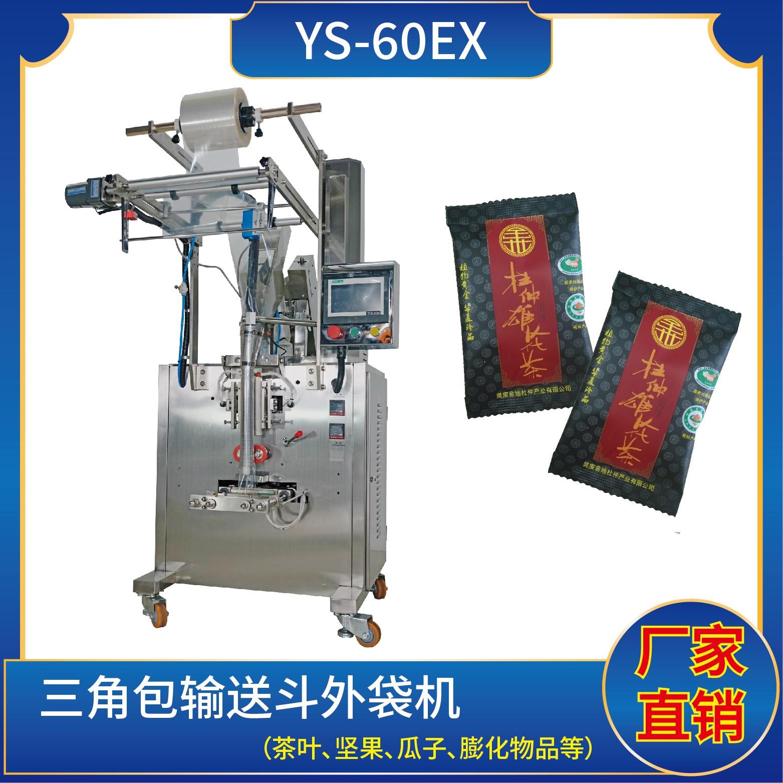YS-60EX 外袋機特 點 可完成三角包內(nèi)袋成品輸送至外袋包裝功能。封口方式三邊封/背封 技術(shù)參數(shù)包裝速度:40 bags/min制袋尺寸:長 ( L ) : 80 - 140 mm 寬 ( W ) : 60 - 120 mm外型尺寸:790 * 1950 * 1800 mm 整機重量:300 kg總 功 率:AC220V / 50Hz / 2.5kw氣 源:≥0.6m3/ min