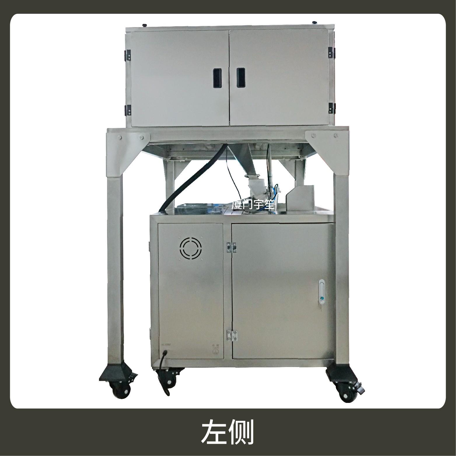 2、適用站立袋、包裝流程全自動、無需人工操作??筛鶕?jù)充填物料的性質(zhì)選配不同的下料結(jié)構(gòu)