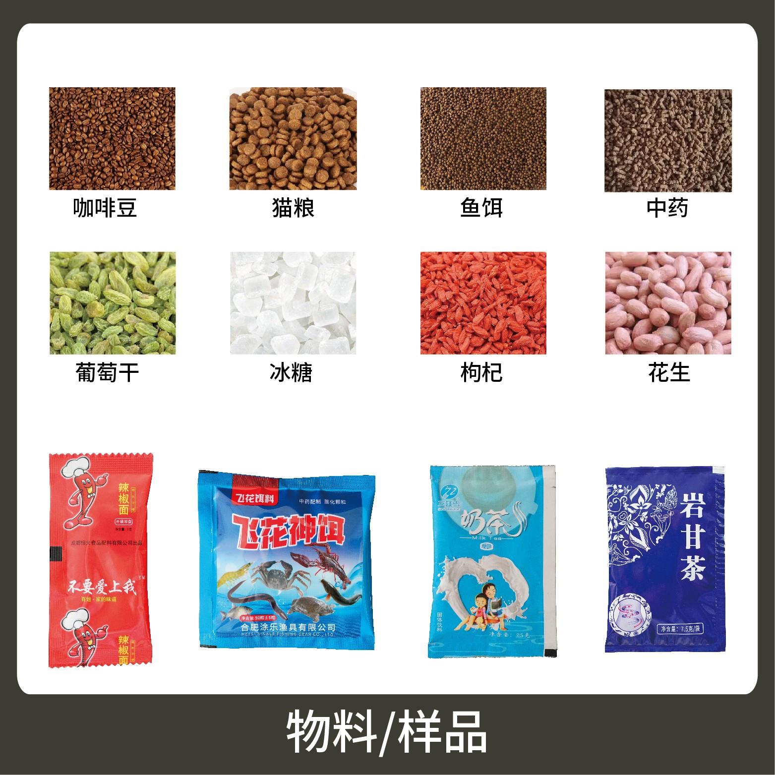 適用于各行業(yè)中堅(jiān)果、炒貨、干果、餌料、中藥等顆粒狀物品的計(jì)量包裝。